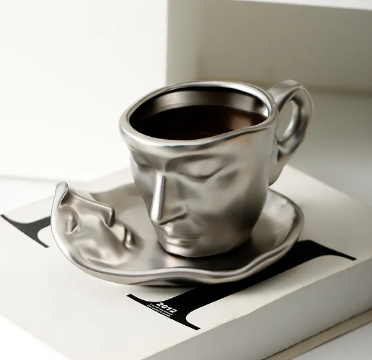 Creative Unique Kissing Face Black Red Blue White Silver Ceramic Coffee and Teacup Mug with Saucer and Spoon Set