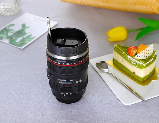 Stainless steel Insulated Camera Lens Coffee Tea Beverage Travel Thermos Mug with Lid and Spoon