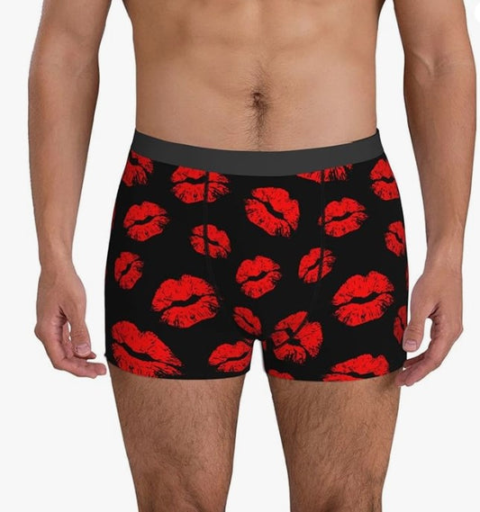 Funny Valentines Day Gifts For Men Lipstick Kisses All Over Black Red Boxer Briefs & Socks Gift Set