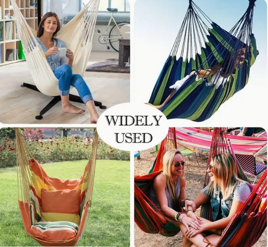 Portable Indoor-Outdoor Colorful Woven Fabric Hammock Chair Swing with Storage Bag Pillows and Straps