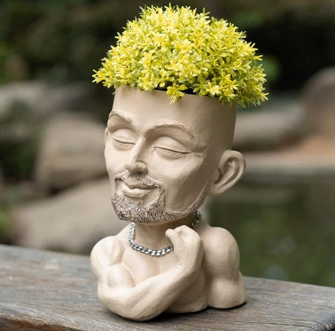 Cute Face Head Unique Planter Succulent Resin Indoor Outdoor Flowerpot Garden Decoration with Drain Holes