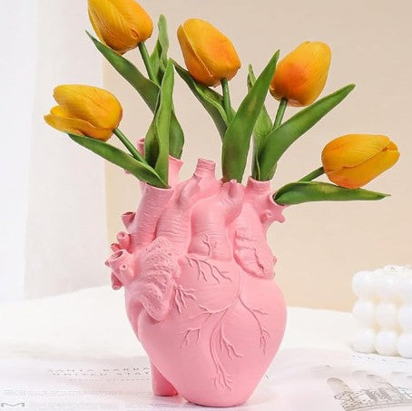 Creative Unique Human Heart Shaped Resin Sculpture Shaped Vase Sculpture Flowerpot Plants for Halloween Home Doctor Office Decoration
