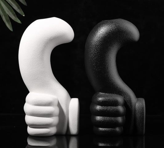 Modern Minimalist Ceramic Black White Vase Unique Thumbs Up Finger Shaped Geometric Decorative Flower Vase for Home Set of Two