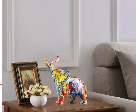 Colored Graffiti Bulldog Bear Elephant Animal Sculpture Figurines Art Pieces for Home Room Decor