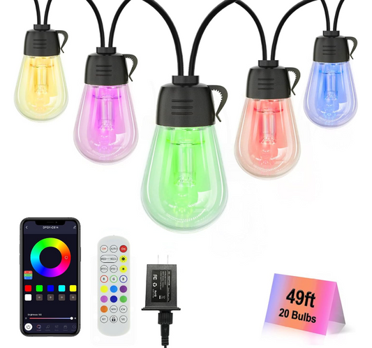 Color Changing Outdoor Shatterproof Waterproof Sync to Music Patio String Lights with Remote & APP