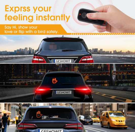 4 Expression and 4 Gestures Finger Car Auto Lights, Road Rage LED Sign for Car, Funny Hand Gesture Light for Car Back Window