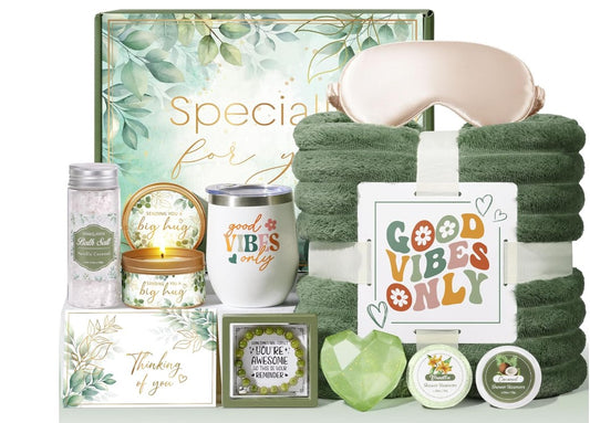 Spa Lavender Rose Natural Camomile Scented Candle Mask Blanket Socks Notebook Soaps Salt Wine glass Jewelry Skin Care Gift Basket Set for Birthday Anniversary Wife loved One Gift For Christmas