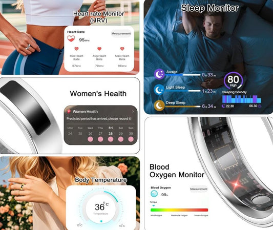 Smart Health Ring for Women Men, Vibration Alert, Touch Control, Fitness Tracker Ring with Sleep/Women's Health/Heart Rate/Steps, IP68 Waterproof for iPhone and Android,