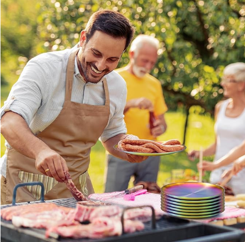 Stainless Steel Rainbow Iridescent Gold Silver Dinner Plates Tableware Cookware with Matching Utensils 9 inch to 12-inch Plate Sets