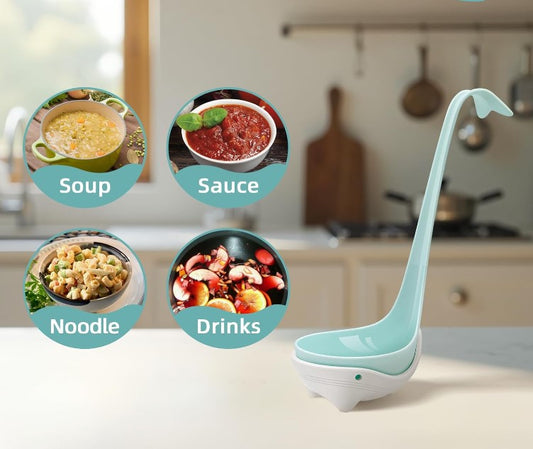 Swan Shaped Soup Ladle Kitchen Spoon White Black Pink Blue Design with Resting Holder