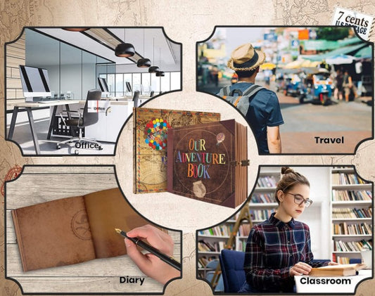 Adventure Book Scrapbook Photo Album Retro Style Embossed Letter Cover Travel Diary Journal Scrap Book Kit For Couples,