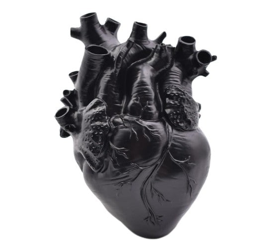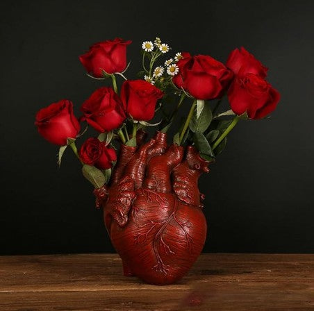 Simulated Human Heart-shaped Vase: Simulated human anatomical heart sculpture. This skull-shaped statue adds a bit of horror to your outdoor area with its vivid appearance and art. Can be displayed at a doctor's office, clinic or any cardiovascular office.