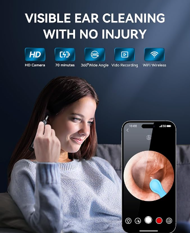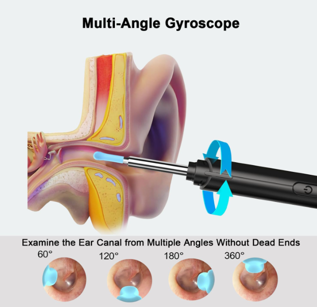 Upgraded 1296P HD Ear Cleaner Camera with LED Lights: ear wax removal tool has a 360° professional wide-angle camera, equipped with 6 adjustable LED lights to help you view and clean earwax effectively. During use, the ear wax removal tool maintains a temperature similar to that of the human body. Suitable for adults and children. It can be used for checking teeth, nose, and other body parts.