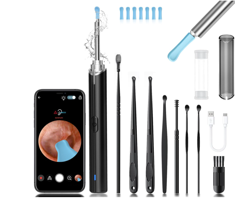 11 Pcs Earwax Removal Kit Includes: Earwax Removal Kit with Light*1, Silicone Earplug Cover*5, Earplug Cover Storage Bottle*1, Traditional Ear Scoop Kit*8, Charging Cable*1. Instruction Manual. Equipped with a full set of ear plugs so you can choose the curvature that suits you best.