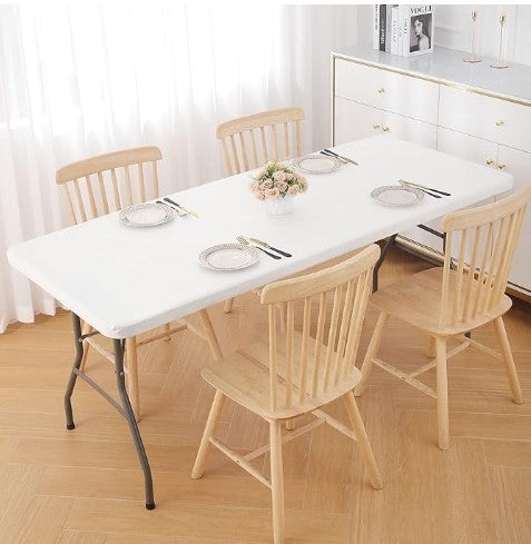 Size and Measurement: The 6FT rectangle tablecloth fits 30"x 72" folding tables, which meets for 4-6 people use. Please be sure to accurately measure the size of the tabletop and the thickness of the table for accurate fit.