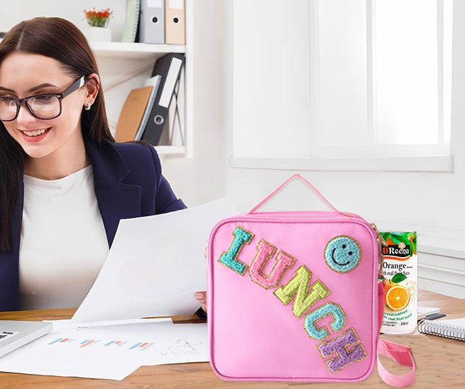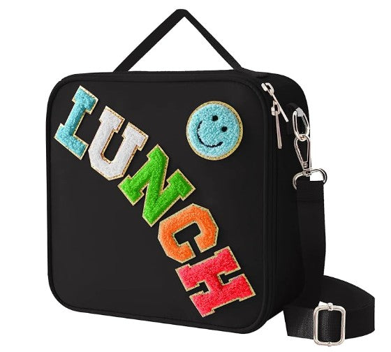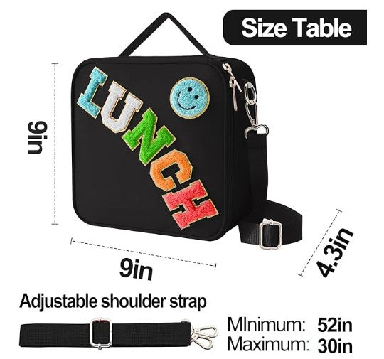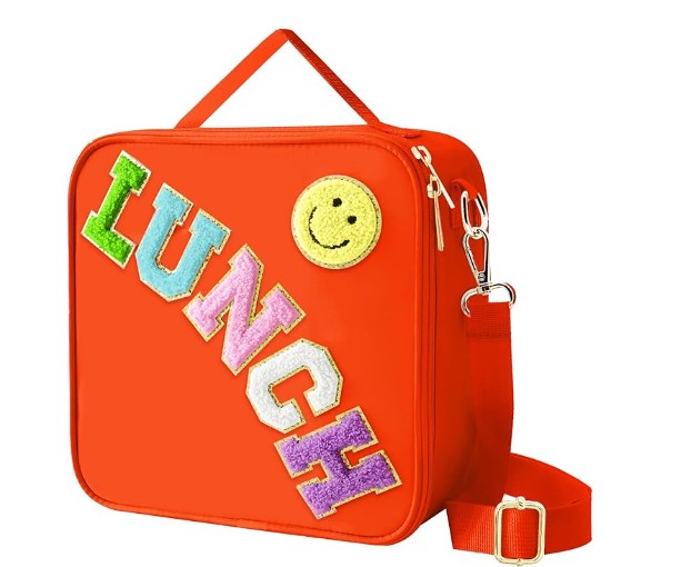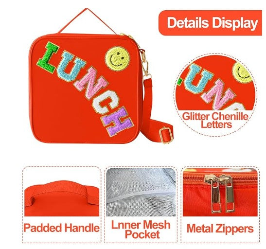 Unique Fun Designs: Fun design for all ages. Cute smiley face design, give you a good mood every day. The reusable lunch box has a handle and features a detachable and adjustable shoulder strap. There are three ways to carry it as a shoulder bag, crossbody bag or stylish handbag.