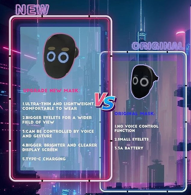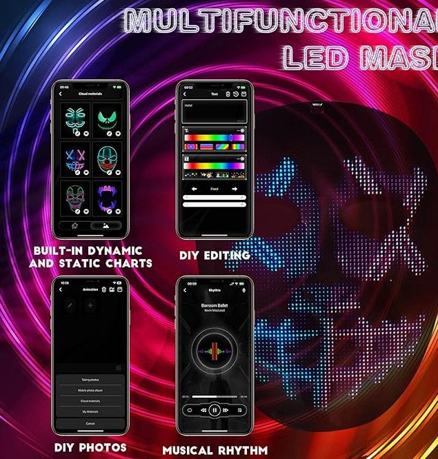 50 Patterns Fantastic Display: Led Mask has 25 dynamic display modes and 25 static display images, led full face mask is Most Amazing Costumes & Cosplay apparel mask, attract everyone's attention.