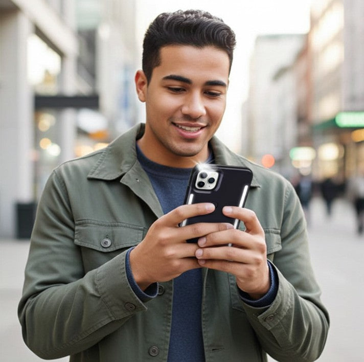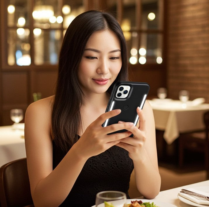 Built-In LED Lights: Say goodbye to dimly lit selfies! The illuminated selfie case features built-in LED lights that surround your phone, providing a soft and flattering glow for picture-perfect selfies every time.