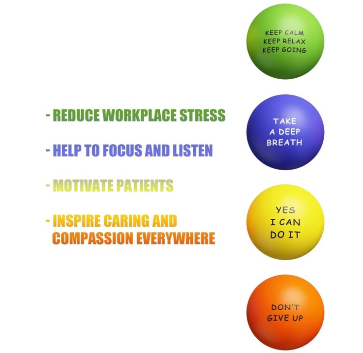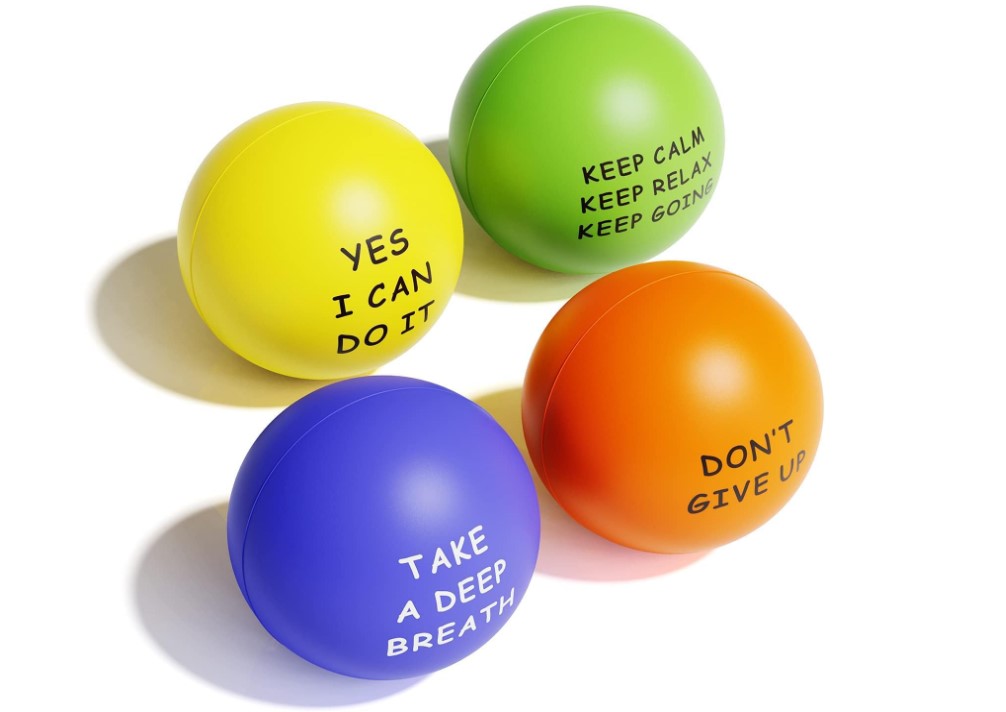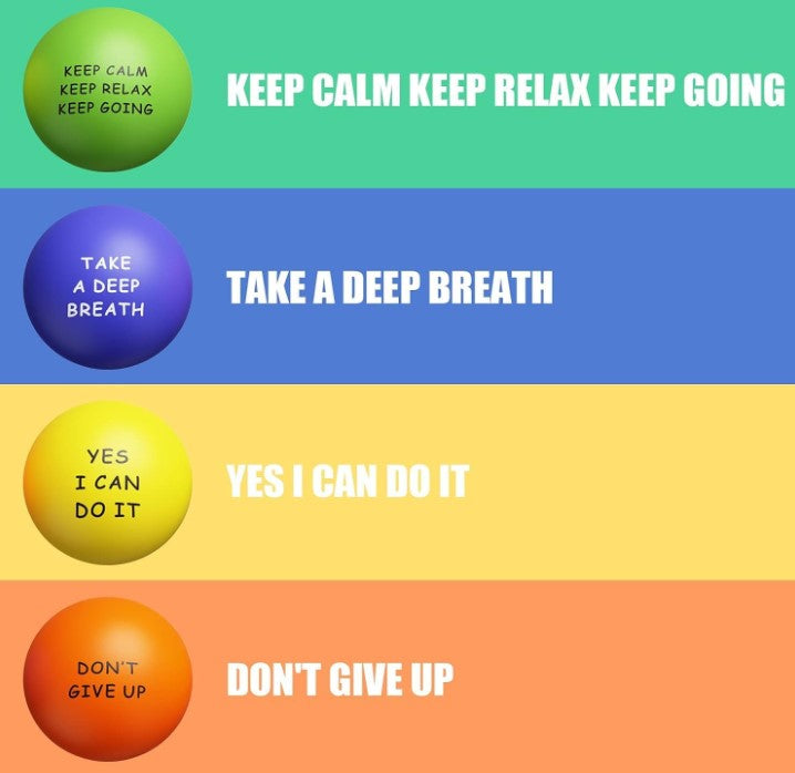 Inspirational Quotes: 4 pack stress balls with different inspirational quotes, such as "Yes, I can do it" and so on. When you spend all night studying for exams at school, or have a hard time concentrating at work, the purpose of using these balls to reduce stress is to help you overcome these stressful situations in your life