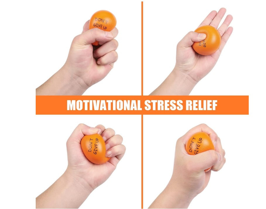 Multiple Functions/ 4 Fun Colors: The stress relief ball with inspirational quotes can not only help people focus, relief stress of life, keep the mood relaxed, relieve anxiety and autism, etc. It can also help people recover and strengthen their hands after surgery and when using computers always. Bringing inspiration to life, a preferred for employees, family members, and as a decoration