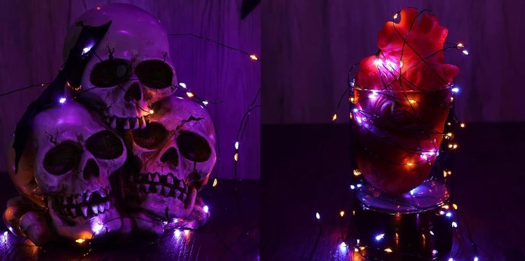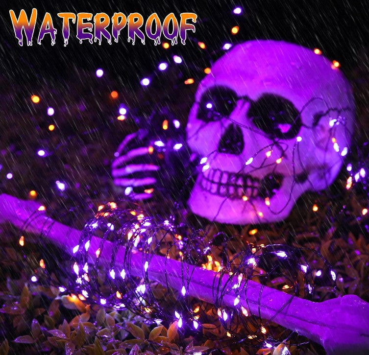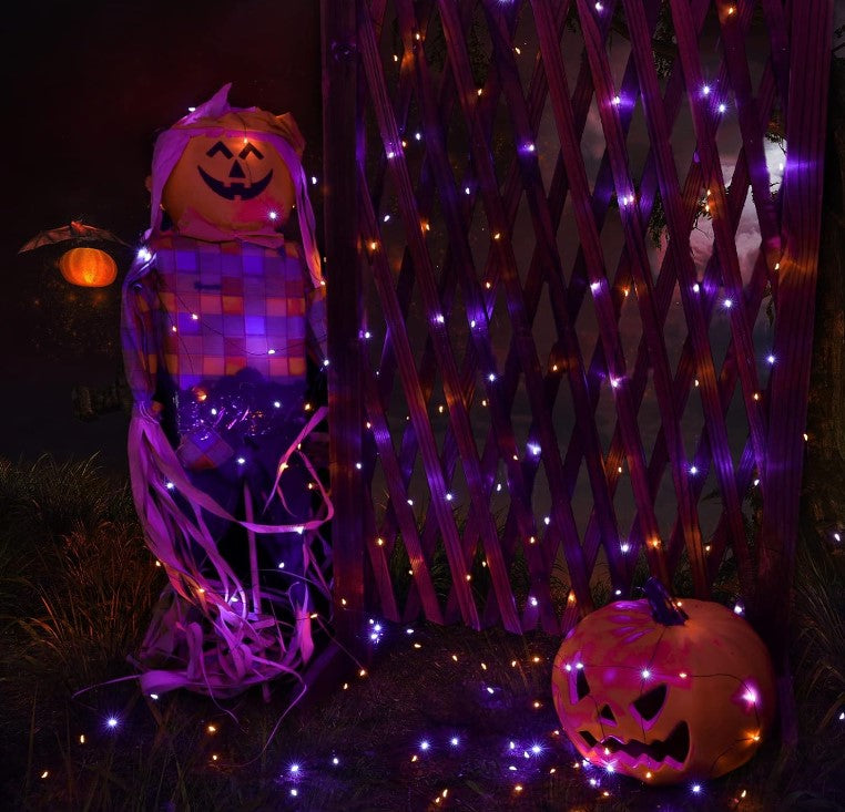 Solar Powered and Auto On/Off: Orange purple Halloween string lights powered by solar energy with no extra electric cost or battery replacement needed. The light sensor charges the lights during the day and turns them on automatically at night