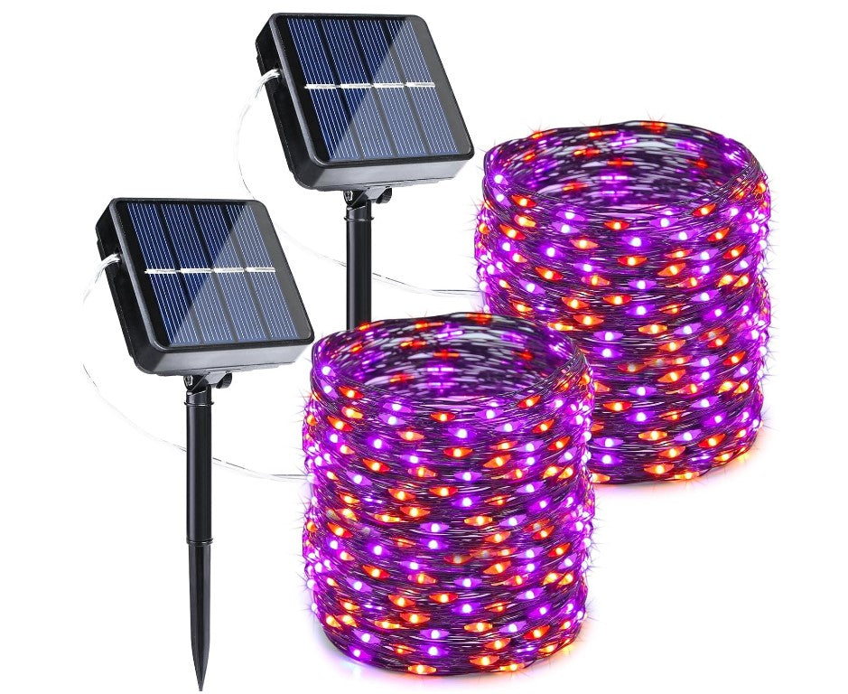 Orange, Purple Halloween Solar String Lights Total 100 ft 300 LED 8 Modes Solar Fairy Lights, Waterproof Lights with Black Wire 2 Pack