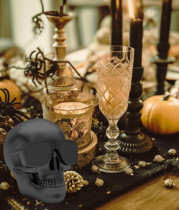 LED Light-Up Eyes: The skull head speaker features LED lights in its eyes that can be customized to glow in various eerie colors. These lights add to the spooky ambiance and make the speaker come to life.