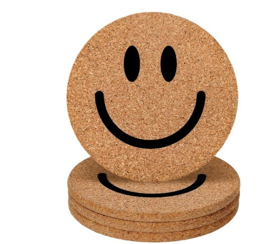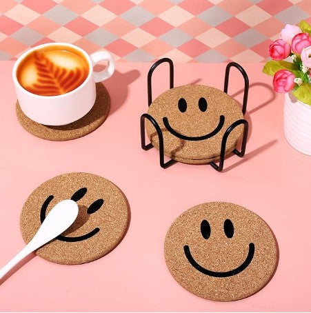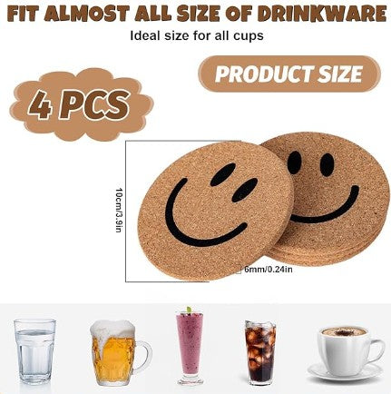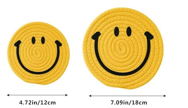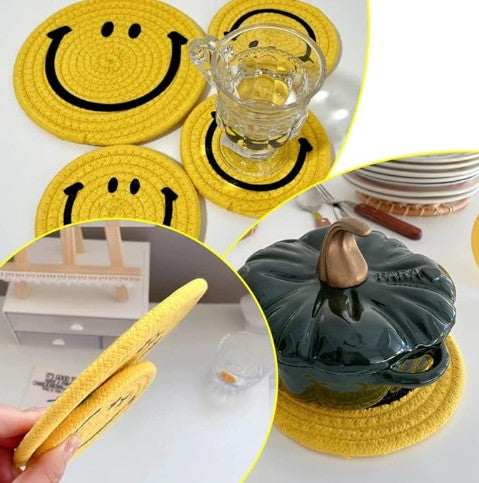 Smiley Happy Disposable Cotton Rope Cork Coasters Decorative Face Paper Placemats for Home Kitchen Birthday Weddings Parties 4-40 Pack