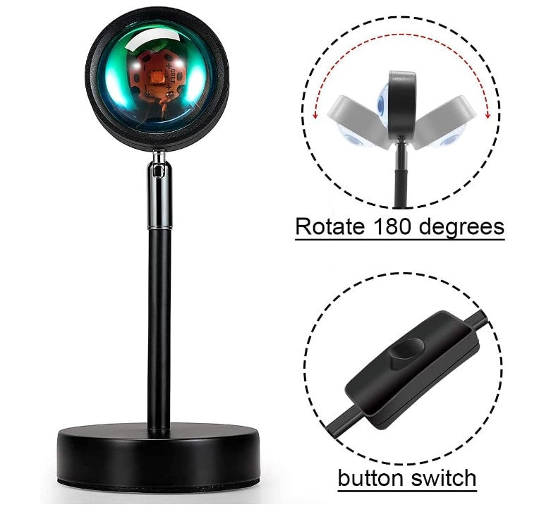 How to Use: The greater the distance, the greater the projection that the sunset light can throw on the wall or ceiling. The light casts amazing-colored circular lights on the wall, ceiling and floor. Size is 10in x 5in. Outdoor or indoor use.