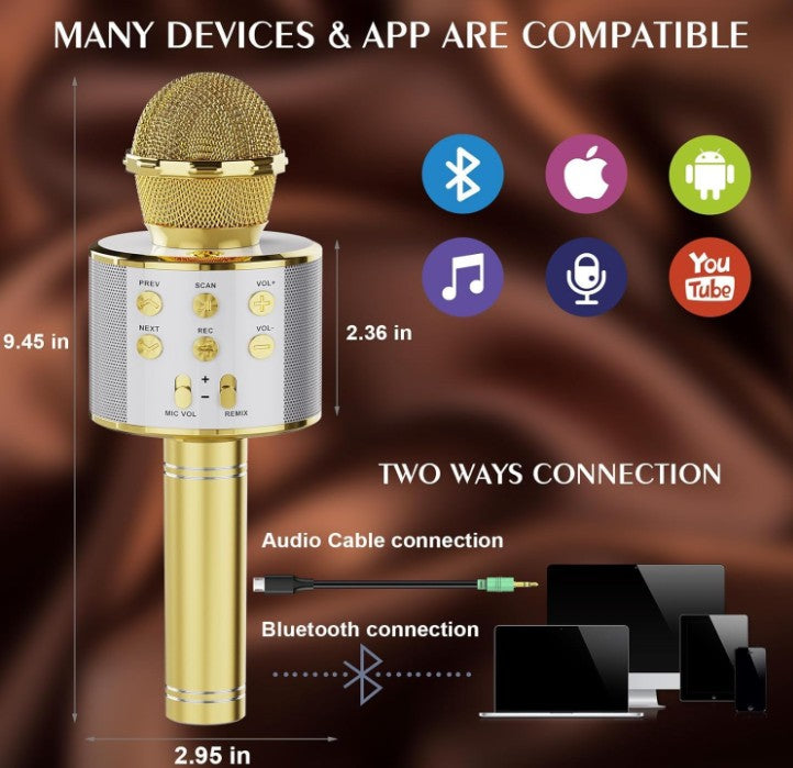 Longer Happy Time: Karaoke microphone with 1800mAh battery brings 8 hours of enjoyable singing after a full charge. Stand-by time more than 20 days. And the karaoke microphone is made of durable aluminum alloy material. well-made.